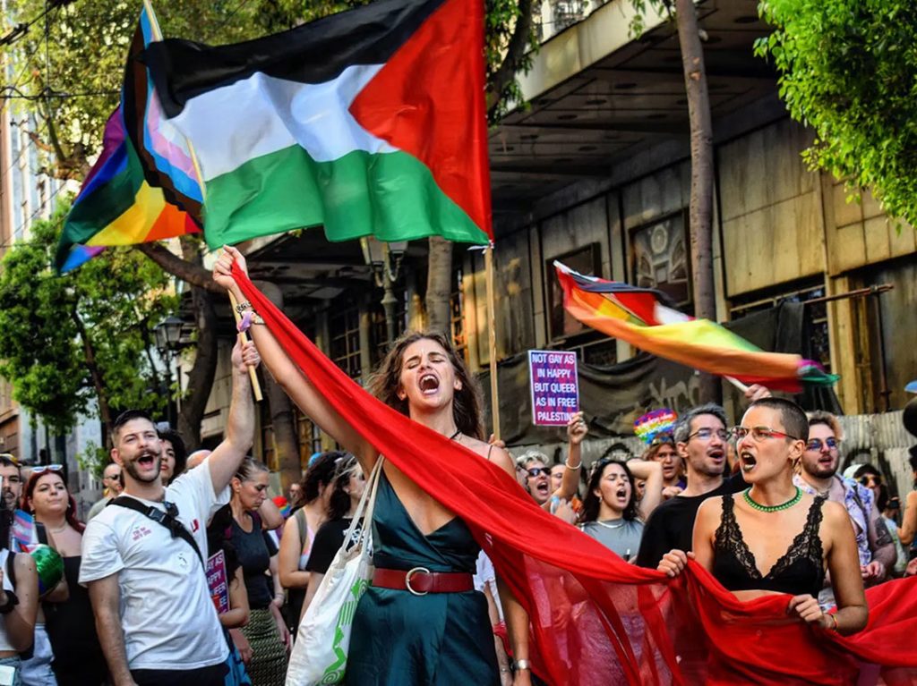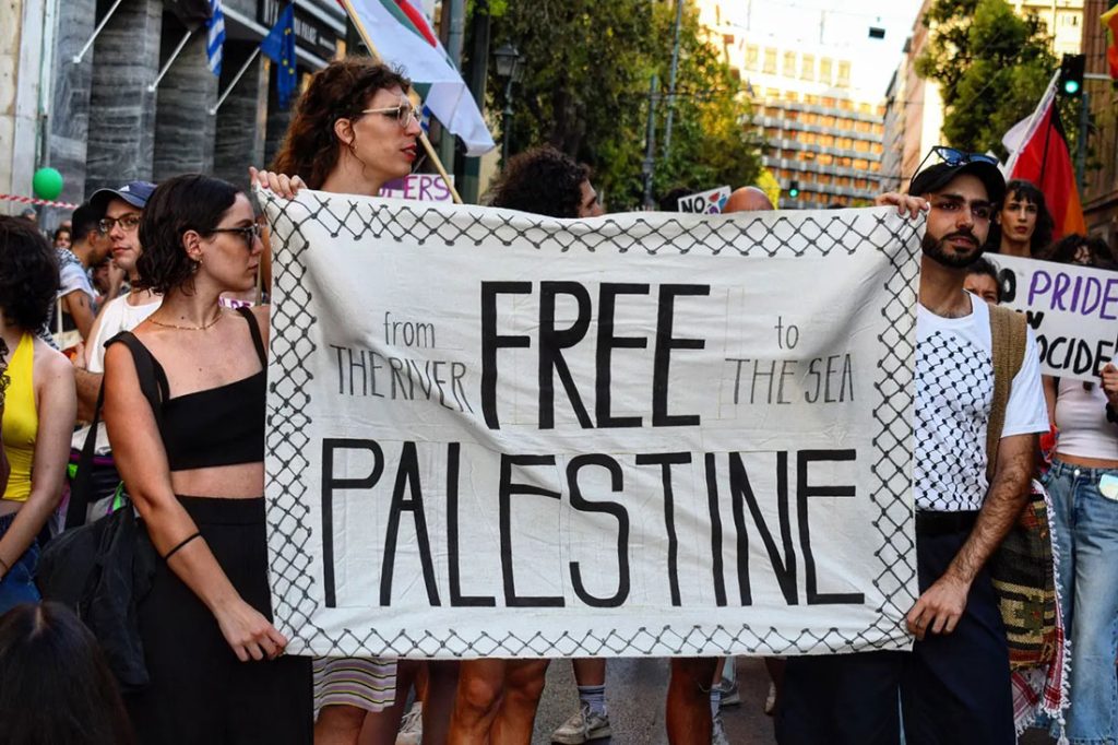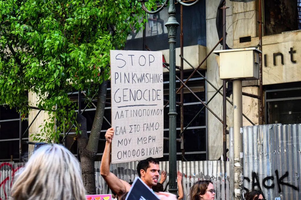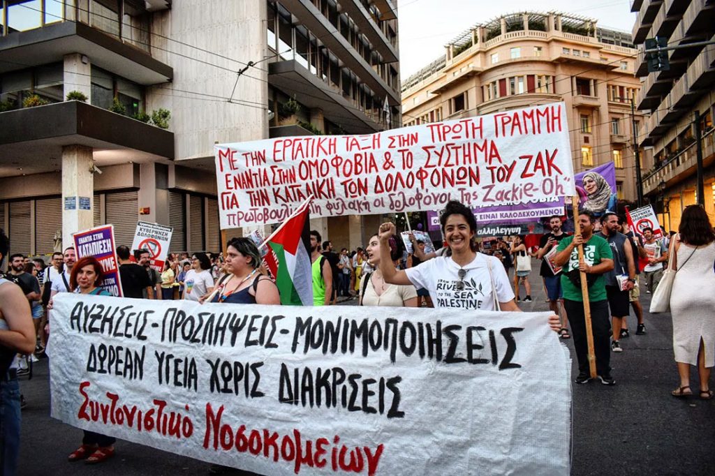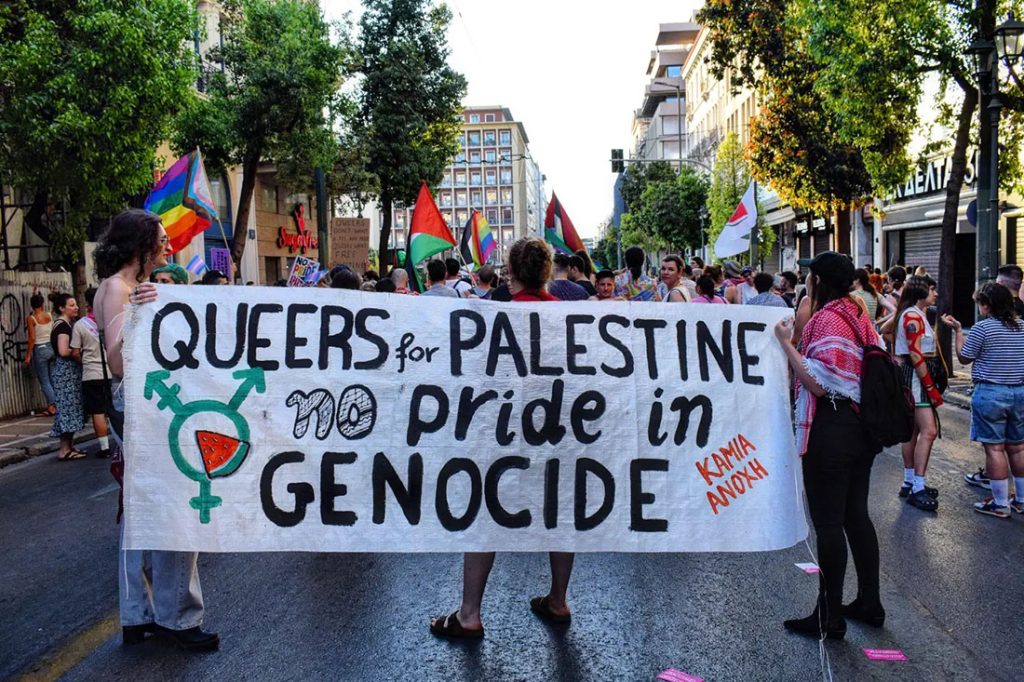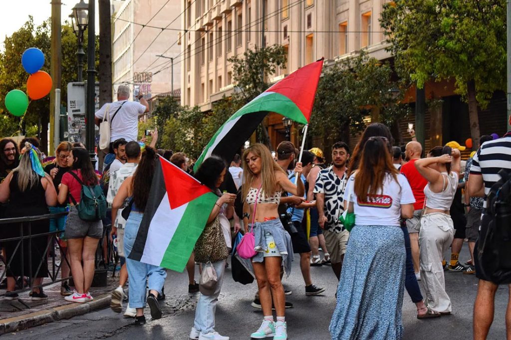 Κι επειδή ένα από τα βασικά συνθήματα του Pride ήταν, είναι και θα είναι για πάντα η ειρήνη, δεν έλειψαν, φυσικά, τα συνθήματα υπέρ της Παλαιστίνης, κατά του πολέμου και της βίας.