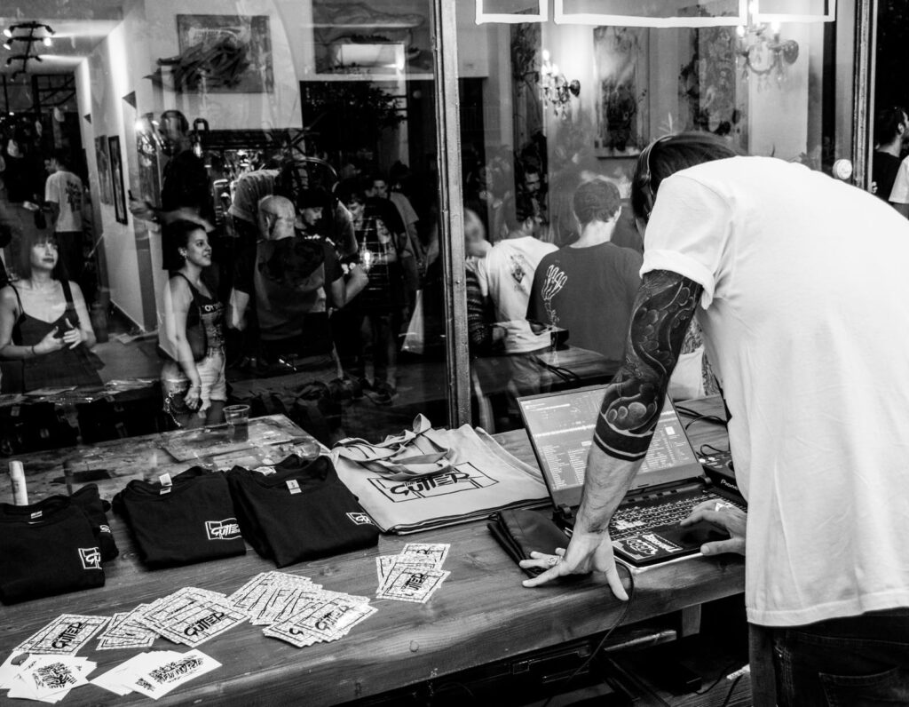 «Είμαστε 10 καλλιτέχνες και μοιραζόμαστε τον ίδιο χώρο γιατί ταιριάζουμε σαν ενέργεια. Το μαγαζί ονομάζεται the gutter και είναι στο Θησείο. Ο καθένας έχει το στυλ του, τη δική του ταυτότητα. Δουλεύουμε με σεβασμό και στήριξη και εξελισσόμαστε όλοι παρέα».
