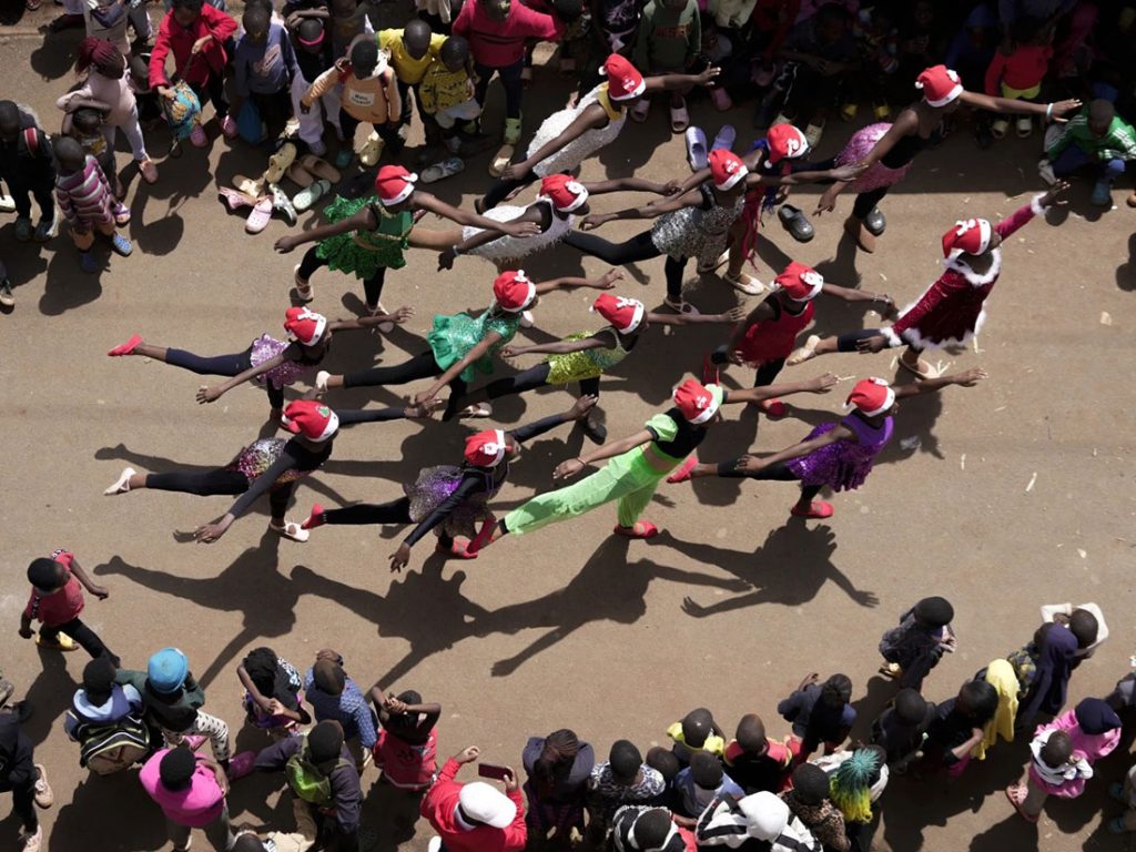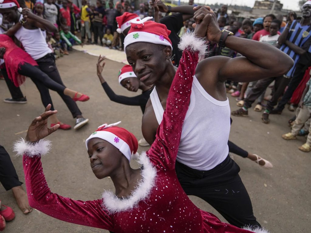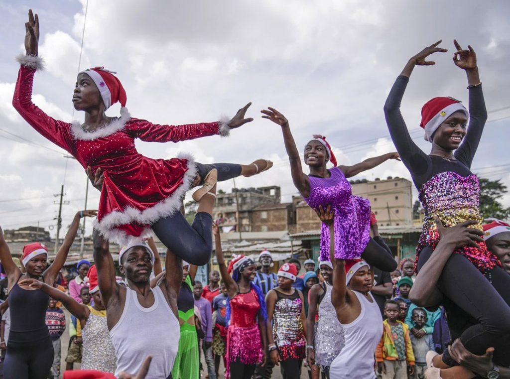 Εκατοντάδες κάτοικοι στο Ναϊρόμπι της Κένυας χειροκροτούσαν καθώς οι μπαλαρίνες, φορώντας σκουφάκια του Άγιου Βασίλη και αστραφτερές πολύχρωμες στολές, μετέτρεψαν τους στενούς δρόμους της γειτονιάς Κιμπέρα σε μια χορευτική σκηνή και ένα υπαίθριο πάρτι για όλη την κοινότητα.