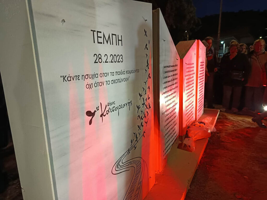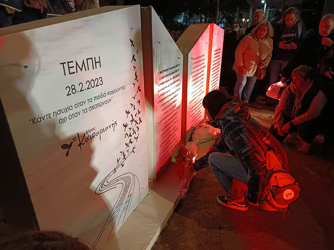 Στη συμβολή της Λεωφόρου Εθνικής Αντίστασης και Θυμάτων Τεμπών στην Καισαριανή πραγματοποιήθηκαν το απόγευμα της Πέμπτης 26/2 τα αποκαλυπτήρια του μνημείου που αφιερώνεται στη μνήμη των θυμάτων της τραγωδίας των Τεμπών, παρουσία του δημάρχου Ηλία Σταμέλου και αρκετών συγγενών των θυμάτων.