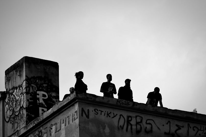 6/6 στις 6 το απόγευμα. Ο Λεωνίδας, ο Χρήστος, ο Γιάννης, ο Πολύτροπος και o Γιώργης δέχτηκαν να βρεθούμε σε ένα εγκαταλειμμένο νοσοκομείο στην Αθήνα. Τους χαζεύω καθώς τους δείχνω το κτίριο. Φαίνονται φίλοι και ομάδα. Μοιάζουν -και είναι- εντελώς διαφορετικοί. Η μπάντα τους μετράει 25 χρόνια.