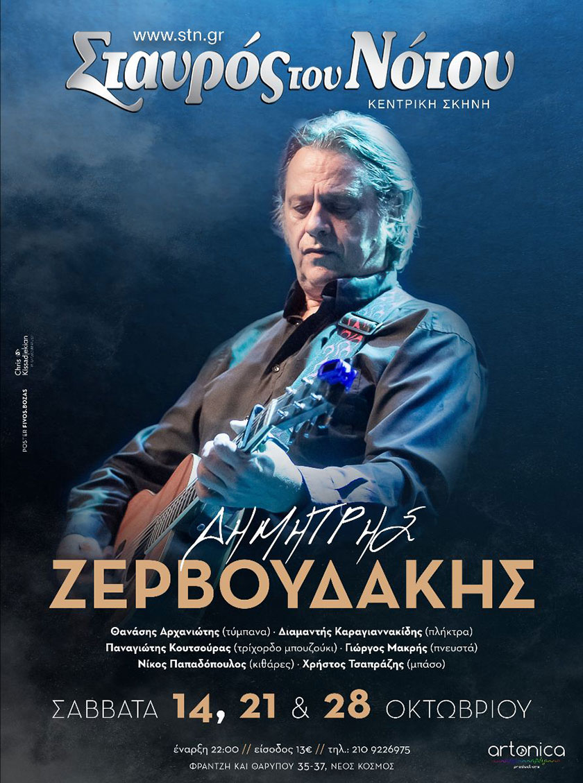 Ο Δημήτρης Ζερβουδάκης, στην έναρξη της χειμερινής του περιοδείας, εμφανίζεται στην Κεντρική Σκηνή του Σταυρού του Νότου για τρεις παραστάσεις, τα Σάββατα 14,21 και 28 Οκτωβρίου.