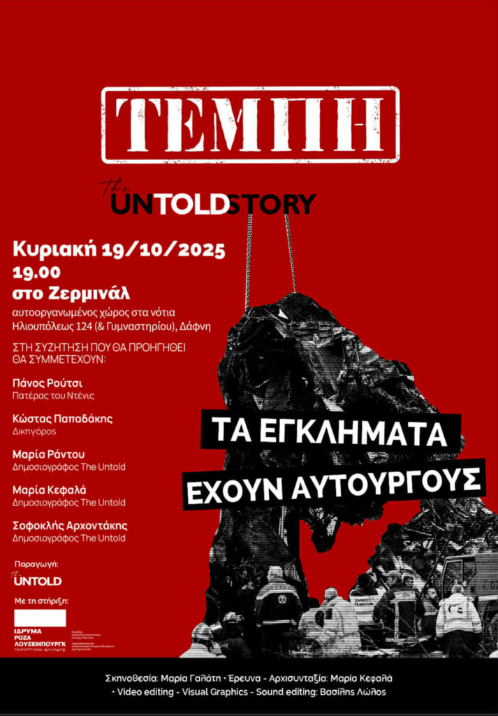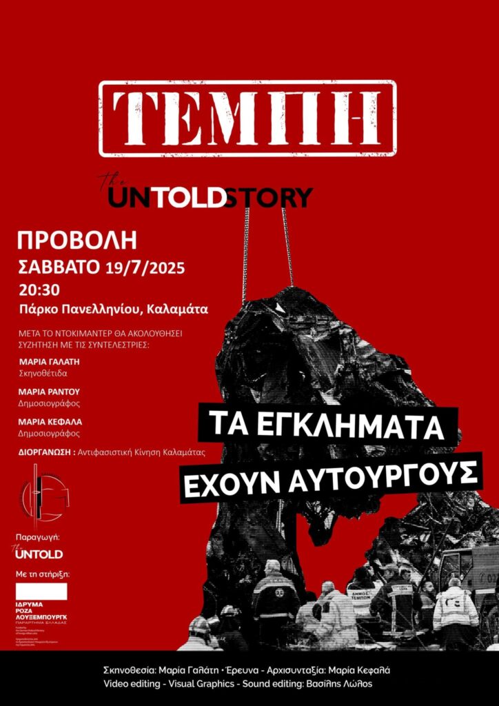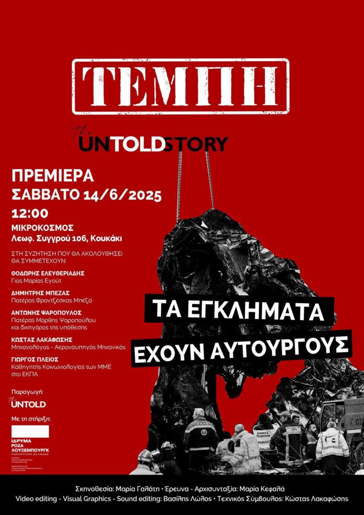 Το ντοκιμαντέρ ΤΕΜΠΗ: ΤΗΕ UNTOLD STORY καταγράφει και προσπαθεί να απαντήσει. Για τις συνθήκες, τις καθυστερήσεις, τις αβλεψίες, τις λεπτομέρειες, τις ιστορίες.