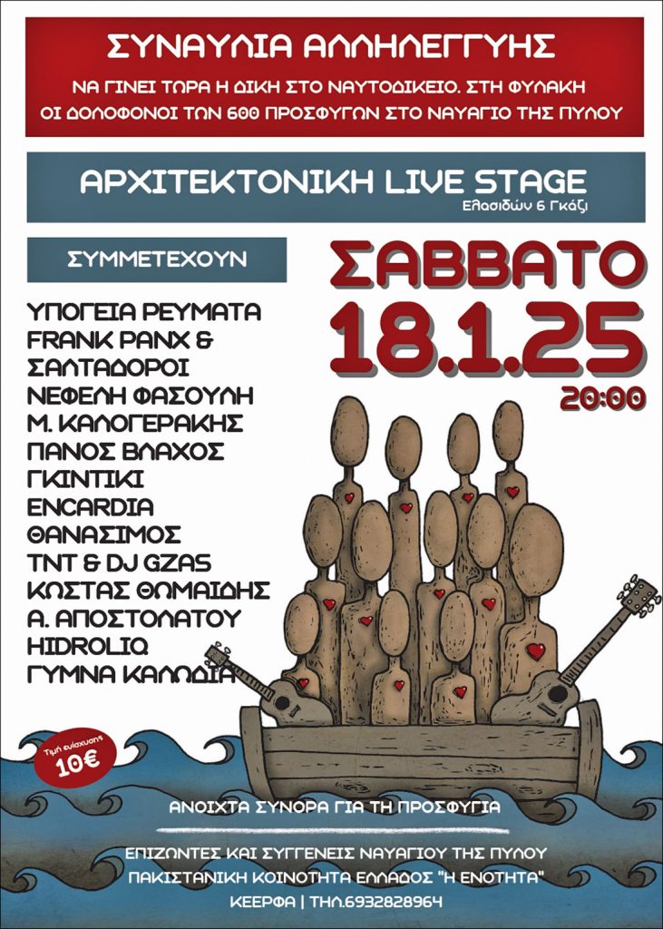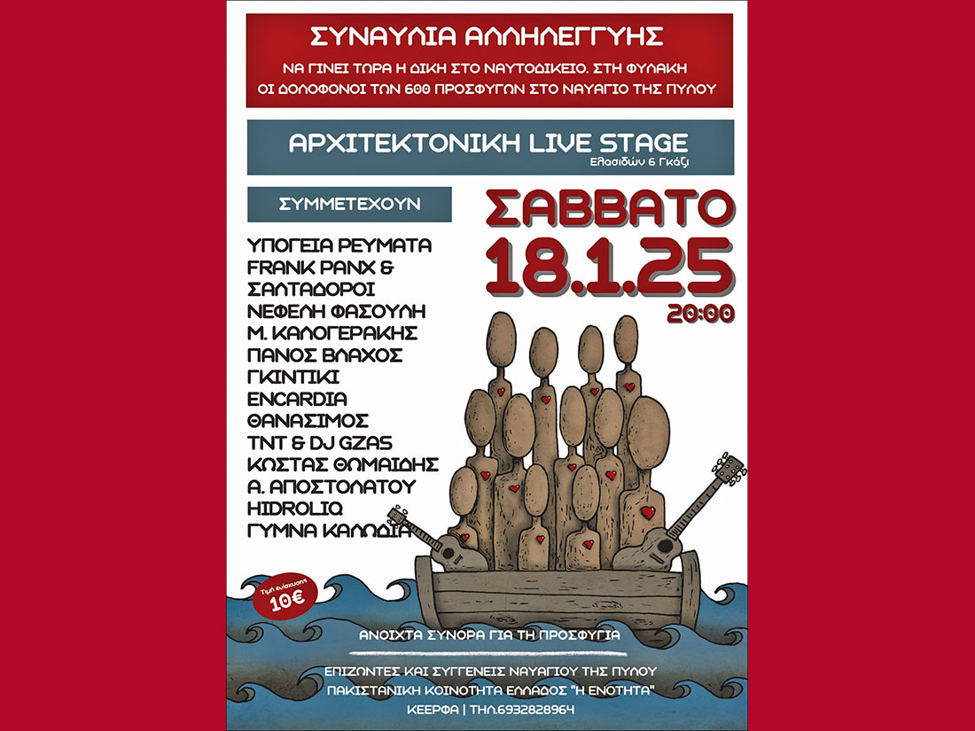 Συναυλία αλληλεγγύης στην Αρχιτεκτονική Live Stage: «Δικαιοσύνη για το ναυάγιο της Πύλου»