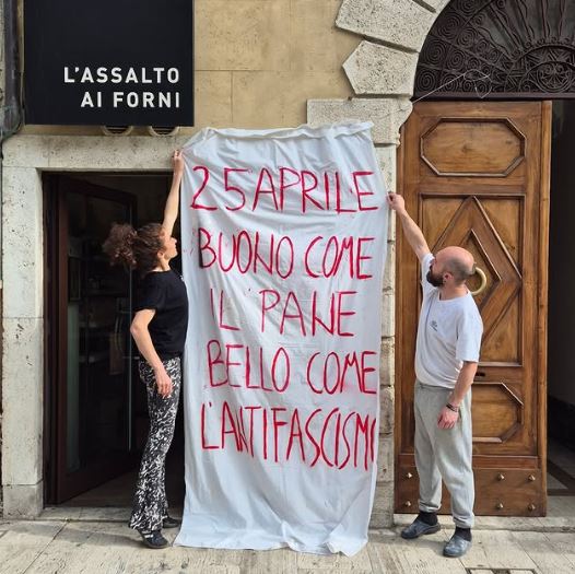 Ένας φούρνος και η ιδιοκτήτριά του, στοχοποιήθηκαν για ένα πανό με αντιφασιστικό περιεχόμενο στο δικό της μαγαζί, την ημέρα της απελευθέρωσης από τους ναζί και της οριστικής απελευθέρωσης από τους φασίστες. Στην χώρα της Μελόνι, του Σαλβίνι και των άλλων νεοφασιστών.