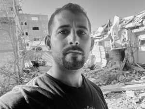 Ένα τεράστιο τραπέζι στρωμένο. Δεξιά κι αριστερά συντρίμμια. Σκέφτομαι εκείνους που επέστρεψαν ελπίζοντας να ριζώσουν πάλι στη Λωρίδα εκείνη του κόσμου, που τους απέμεινε. Έστρωσαν την ελπίδα τους σε κείνο το μακρύ τραπέζι και έφαγαν όλοι μαζί. Πιασμένοι σε παγίδα θανάτου