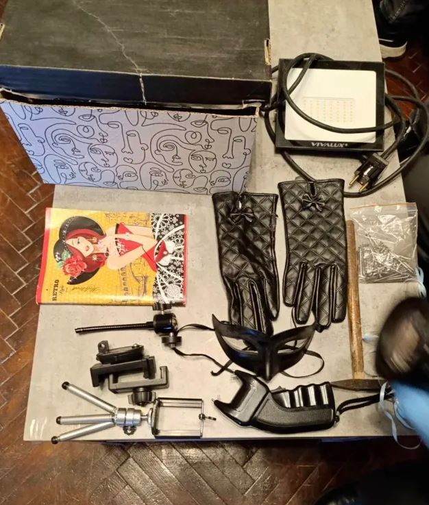 Στα κατασχεθέντα περιλαμβάνονται τα εργαλεία βιντεοσκόπησης και ένα τέιζερ.